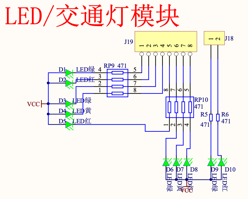 有了最小系统电路后,理论上你的芯片就可以工作起来了,但没有灯呀!所以除了最小系统之外,就是看你的需求而定了,要接入哪些板级设备,板级设备就是跟你处理芯片连接在一起的设备,比如我们要接一个 LED 灯,或者接入一个蜂鸣器,又或者接入一块 LCD 显示屏,等等。