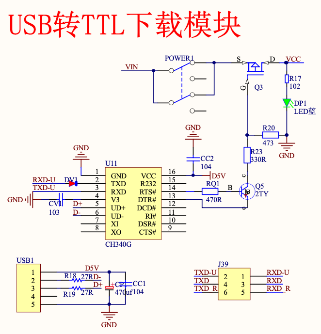 - 下载电路: 就是将编写的程序能够下载到指定的地方 (要看芯片启动逻辑而定),让处理器能够读取运行的